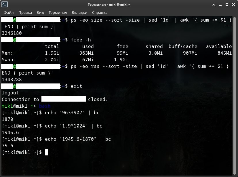 [user@localhost Загрузки]$ echo $$ 11644 [user@localhost Загрузки]$ ls -lha /proc/11644/fd/ итого 0 dr-x------ 2 user users 0 июл 22 08:26 . dr-xr-xr-x 9 user users 0 июл 22 08:26 .. lrwx------ 1 user users 64 июл 22 08:26 0 -> /dev/pts/1 lrwx------ 1 user users 64 июл 22 08:26 1 -> /dev/pts/1 lrwx------ 1 user users 64 июл 22 08:26 2 -> /dev/pts/1 lrwx------ 1 user users 64 июл 22 08:26 255 -> /dev/pts/1 [user@localhost Загрузки]$